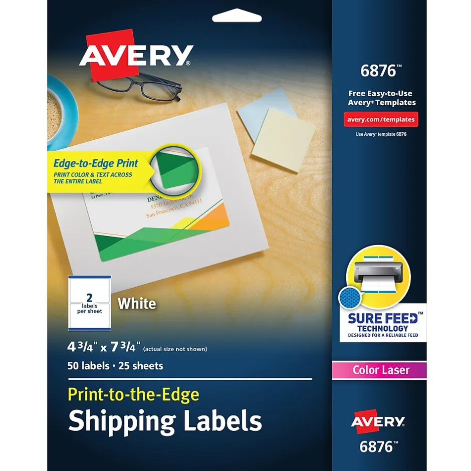 Custom print on Avery 6876 matte white laser shipping labels to create personalized messages or professional shipping labels. Matte white coating makes logo colors look vivid and bright, while words pop for high visibility. These Avery 6876 matte white laser shipping labels are compatible with most popular laser printers and copiers, and the labels as jam and smudge free.