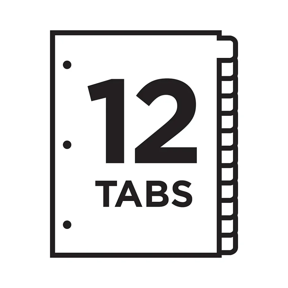 - Three-hole punched and ready for use; 12-tab