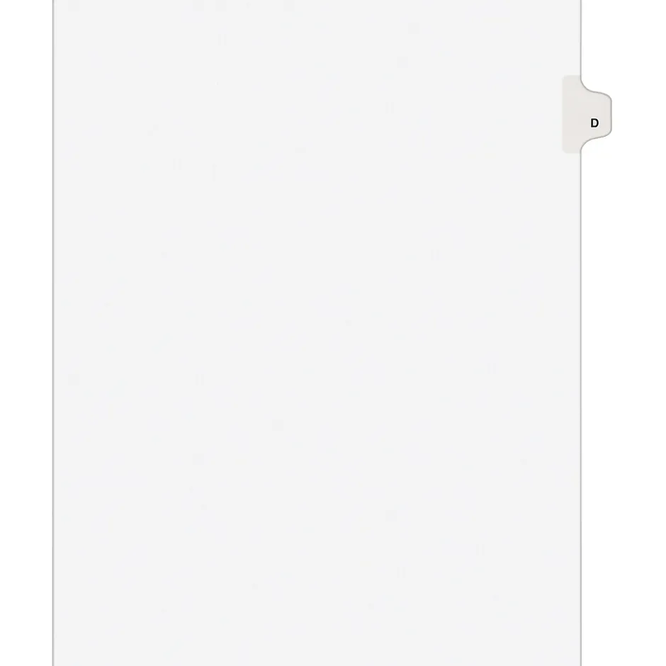 Avery® Tab D alphabetical individual set in white color is perfect choice to organize your index briefs, legal exhibits, mortgage documentation files and more.