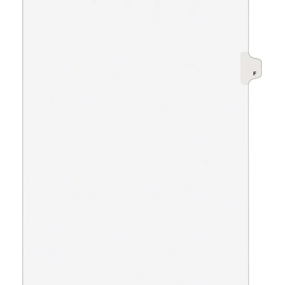 Avery® Tab F alphabetical individual set in white color is perfect choice to organize your index briefs, legal exhibits, mortgage documentation files and more.