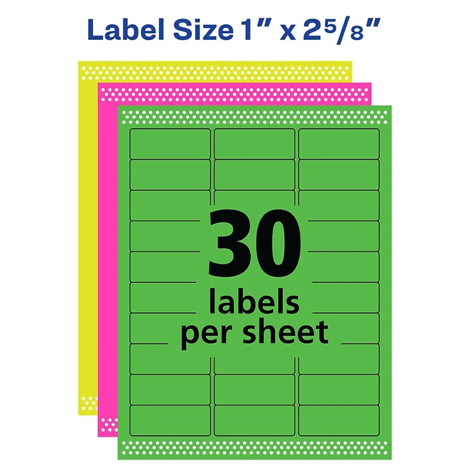 - Each colored address label sheets include 30 labels, totaling in 450 neon stickers
