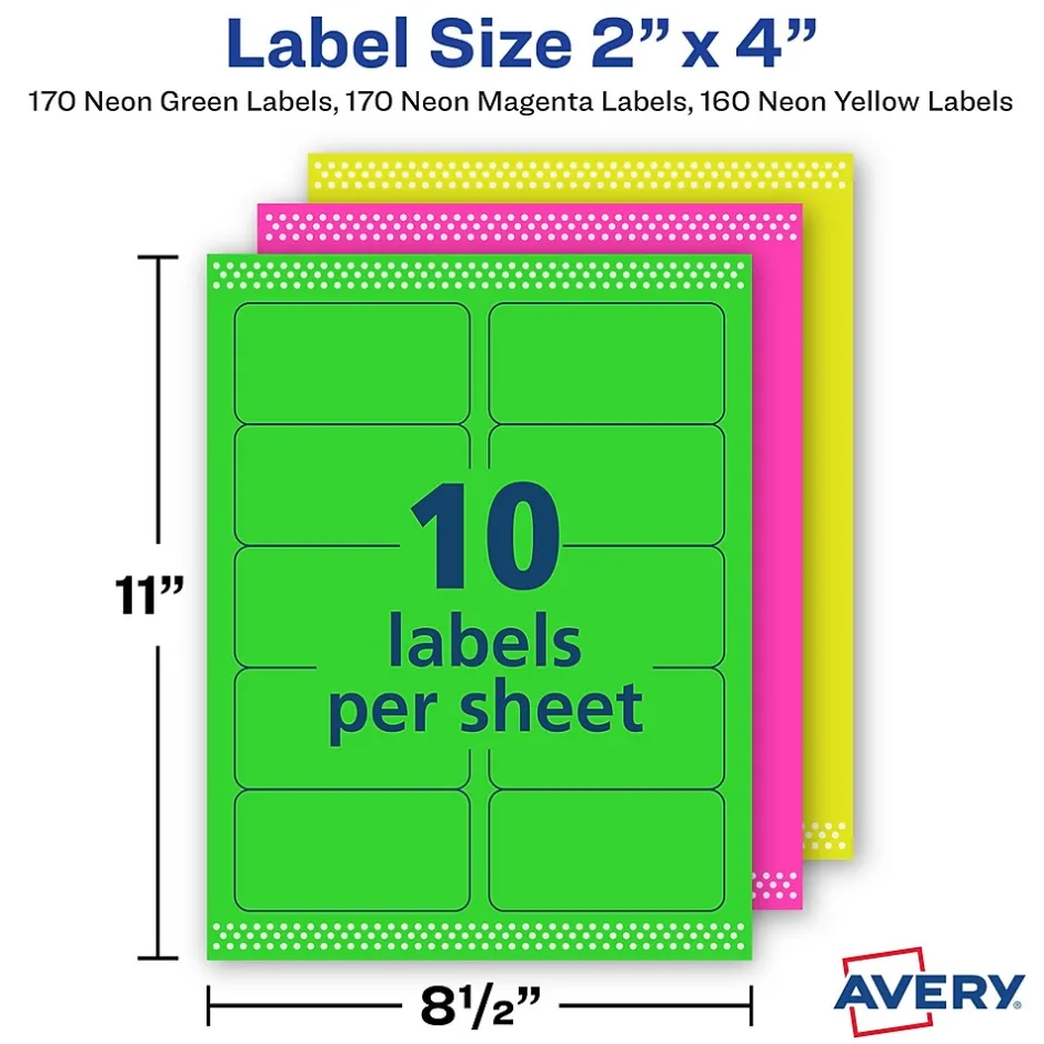 - Expect high-quality, smudge free printing results with neon shipping labels from Avery that are optimized for laser printers