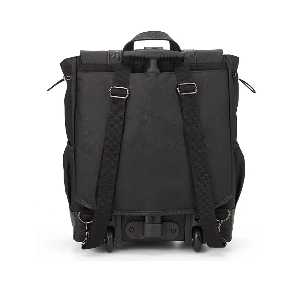 Get the ultimate travel companion for busy professional women with Francine Collection’s Wheels Up convertible roller backpack. Its expandable main compartment and vegan leather flap keep your items safe and secure, while the elastic band pockets make it easy to carry all your essentials with the ease of wheels. The backpack straps can be tucked away, and the slip pockets offer easy phone access. Its gender-neutral style is perfect for day trips, work and school days, gym sessions, or easy overnights. Upgrade your travel game with the ultimate in convenience, style, and practicality. Get your Francine Collection’s Wheels Up convertible roller backpack today and experience the difference. The sky is the limit!