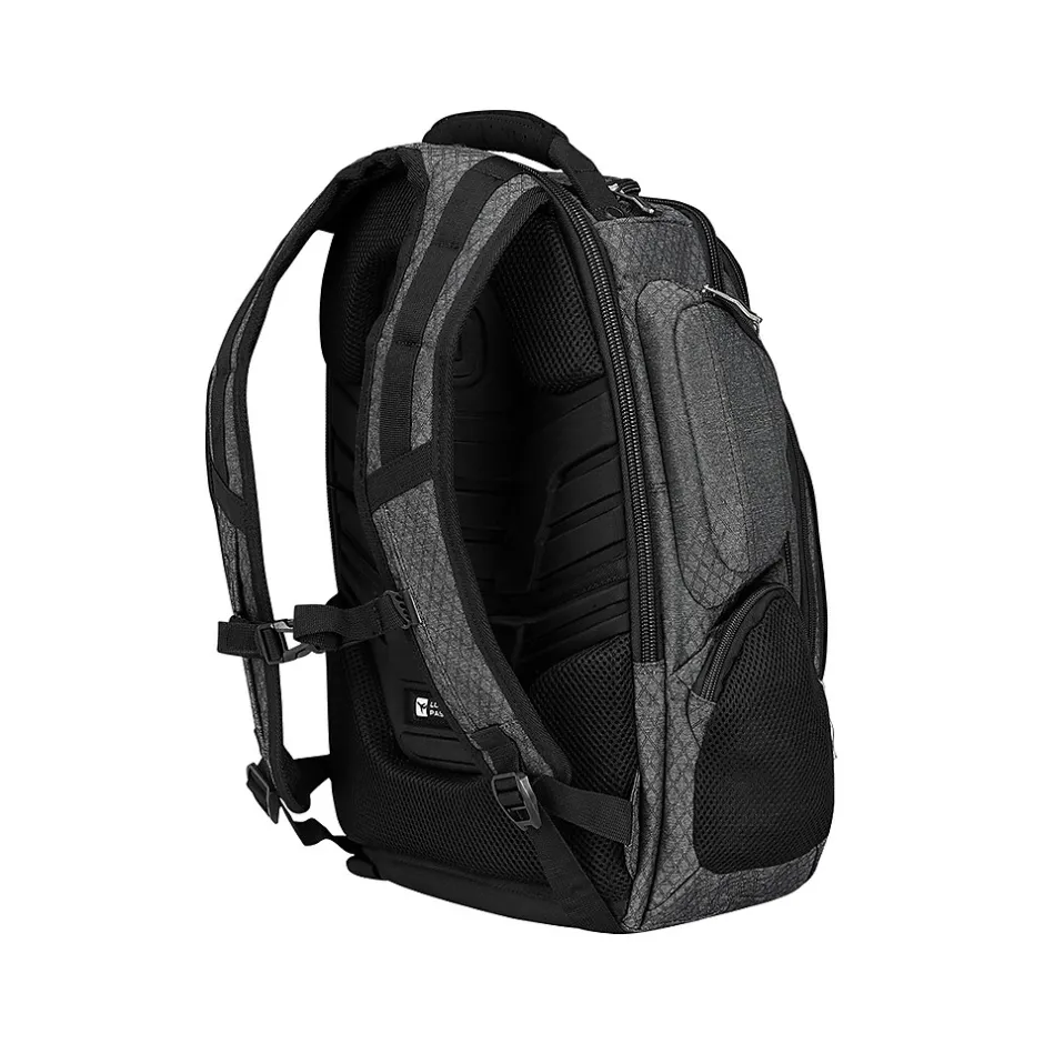 Minimize packing time and streamline your travel experience with this laptop backpack. A large main compartment fits clothes, toiletries, and other essential items, and a deluxe organization panel makes it easy to keep office supplies and other small items in order. The padded 15-inch laptop compartment and separate tablet sleeve keep important devices safe and secure. Featuring a soft-touch grab handle, adjustable ergonomic shoulder straps, and a hybrid unibody back panel, this OGIO Gambit laptop backpack helps you stay comfortable while carrying heavy loads.