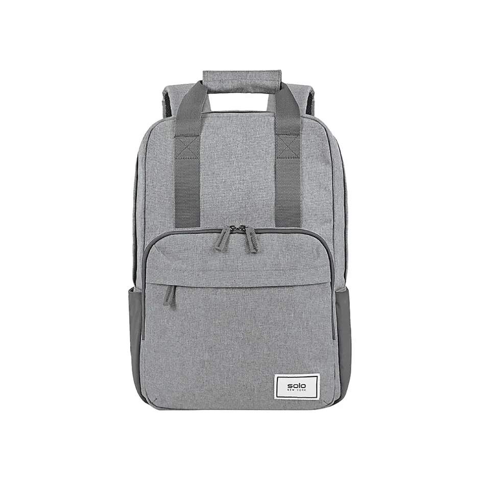 Solo New York is tackling environmental issues from all angles, in style. Designed in urban-cool gray, the Cycle collection brings a sustainable angle to sleek design, making green choices accessible to the masses. Each item in this collection is built with city-functionality in mind and offers an uncompromising style. Made from recycled PET bottles, this briefcase converts into a backpack; Padded mesh 15.6 inch laptop compartment, front zippered pocket, back strap slides over luggage handles.