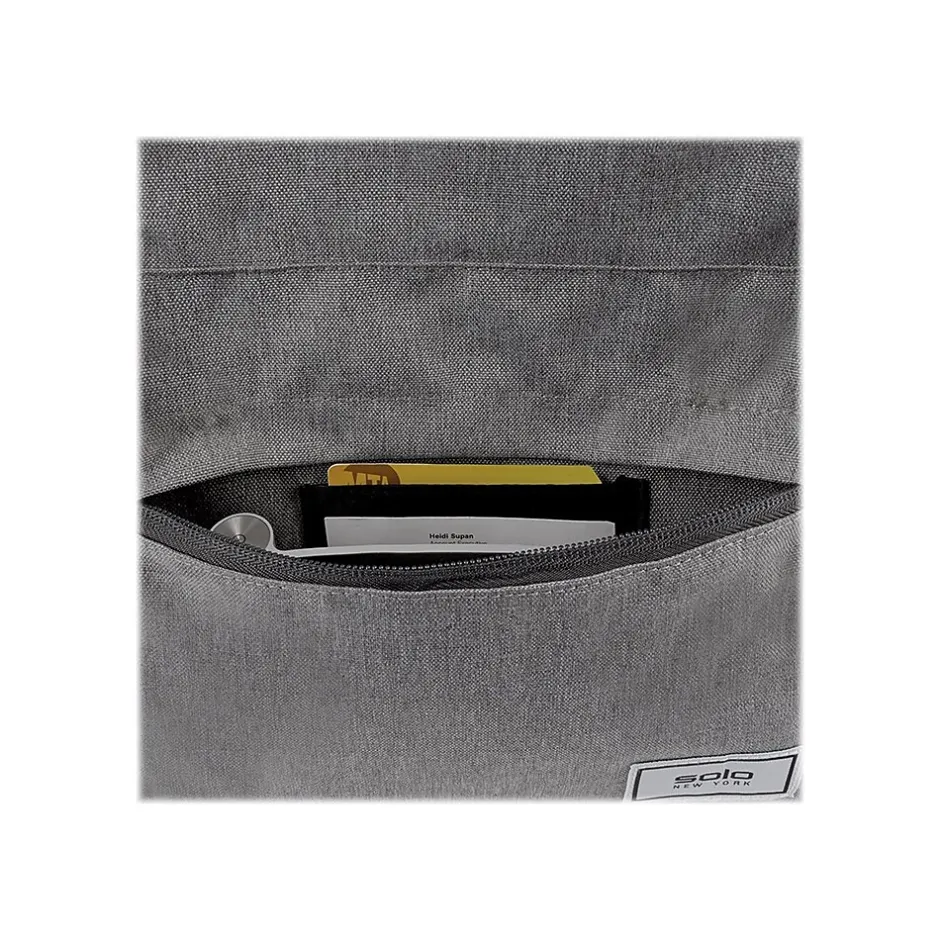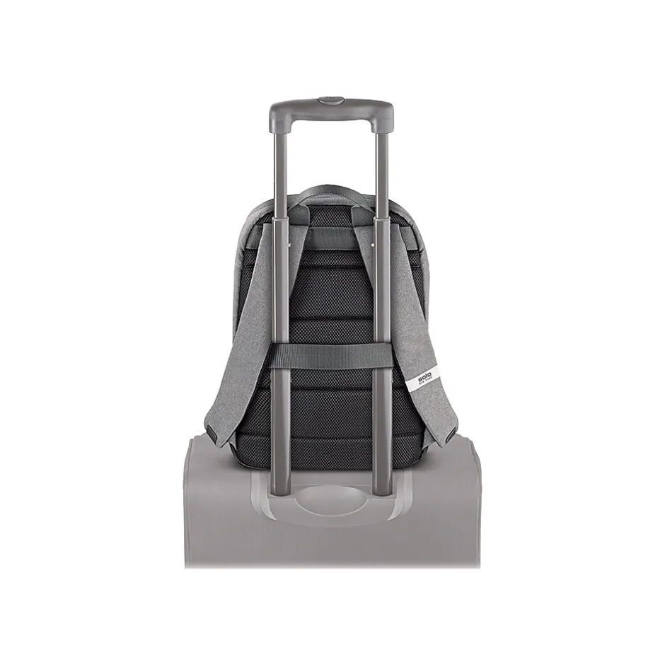 Solo New York is tackling environmental issues from all angles, in style. Designed in urban-cool gray, the Cycle collection brings a sustainable angle to sleek design, making green choices accessible to the masses. Each item in this collection is built with city-functionality in mind and offers an uncompromising style. Made from recycled pet bottles, this backpack has a padded compartment for 11- 15.6 inch laptops, a front zipper pocket with key clips and slide over most telescoping luggage handles.