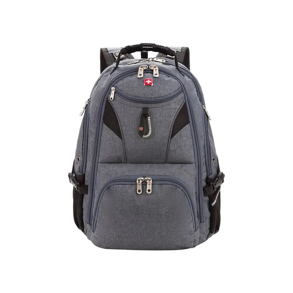 A favorite for those who wish to modify their bag, the Swissgear 5977 ScanSmart Laptop Backpack features a clean front panel designed specifically to accept custom embroidery of up to 5″ in diameter. Built with signature ScanSmart technology, your devices remain protected in a lay-flat compartment that has a 17″ laptop pocket and a floating TabletSafe sleeve. The main compartment features a file accordion and a mesh zip pocket to store important papers, books, and everyday essentials. The exterior boasts an organizer pocket to quickly store and access office supplies, travel documents, your ID and keys. Stash additional items inside a u-shaped front pocket and store your water canteen inside large side pockets. An inner media pocket lets you nestle your smartphone and connect your earbuds to a headphone port so you can listen to your playlist hands-free. Side compression straps, ergonomic shoulder straps, and Airflow padding contour to your physique for all-day comfort. Plus, a heavy-duty molded handle befits grab-and-go mobility.