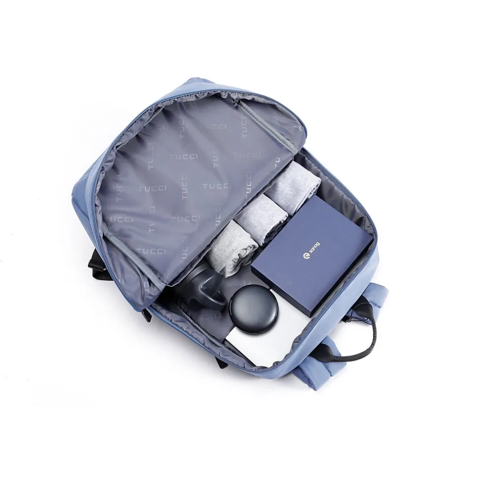 This sleek backpack features a durable, water-resistant woven fabric, ensuring your belongings stay safe and dry.