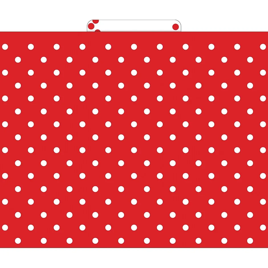 Barker Creek’s Red & White Dot Letter-Size File Folders are an affordable way to organize your office, classroom, or home with style and flair. This set of stylish desk accessories includes 36 file folders – nine each of four designs. The folders are 1/3 tabbed, which means that they have three tab positions – twelve folders are tabbed on the left, twelve folders are tabbed in the center, and twelve are tabbed on the right.The 14-point stock makes these folders perfect for desktop filing, meeting handouts, and student papers.These unique office supplies are fully reversible, each folder having a black & white dot design on one side and a different dot design on the reverse side. The possibilities are limited only by your imagination! Coordinating products are available. Search: Barker Creek Dots.