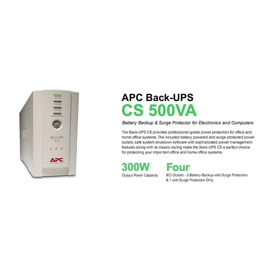 Plug routers, computers, and security systems into this battery backup and surge protector to keep vital equipment powered up and protected. Protection from power surges and lightning strikes safeguards your investments, while instant battery power backup keeps your office connected and working when the electricity goes out. This APC battery backup and surge protector offers six surge-protected outlets to defend your critical workplace gear.