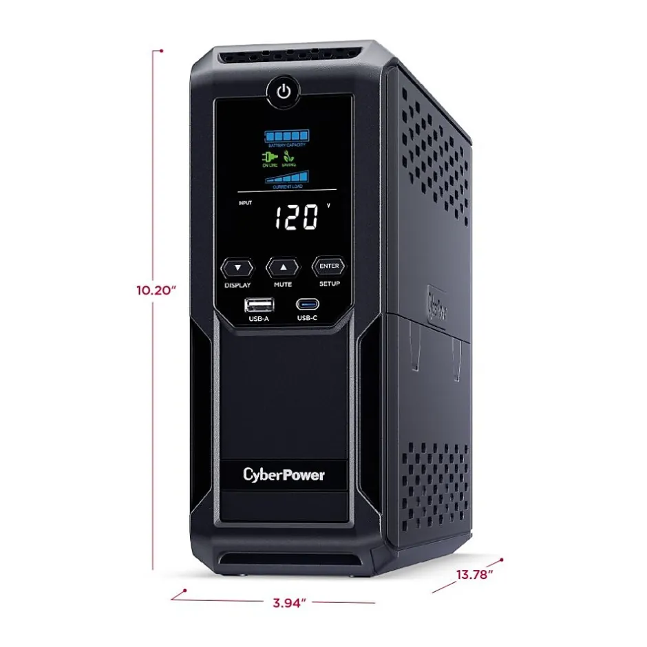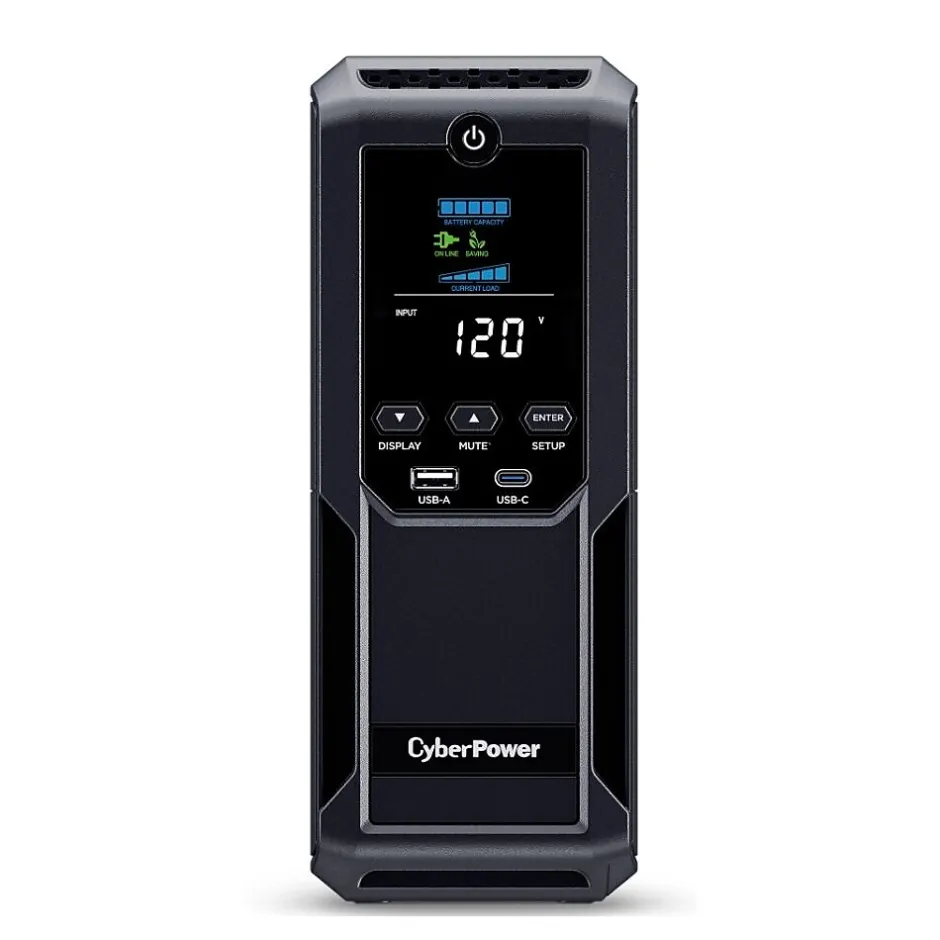 1500VA/900W Intelligent LCD Battery Backup Uninterruptible Power Supply (UPS) System uses simulated sine wave output to safeguard workstations, networking devices, and home entertainment equipment