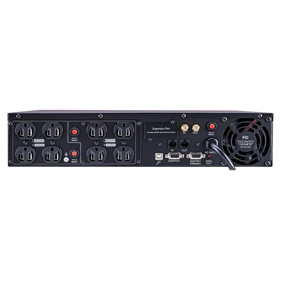 A rack/tower UPS with line interactive topology, the CyberPower Smart App LCD CPS1500AVR provides battery backup (using simulated sine wave output) and surge protection for department servers, workgroup servers, workstations, network devices, and telecom installations without active PFC power supplies. The CPS1500AVR uses Automatic Voltage Regulation (AVR) to correct minor power fluctuations without switching to battery power, which extends battery life. AVR is essential in areas where power fluctuations occur frequently.