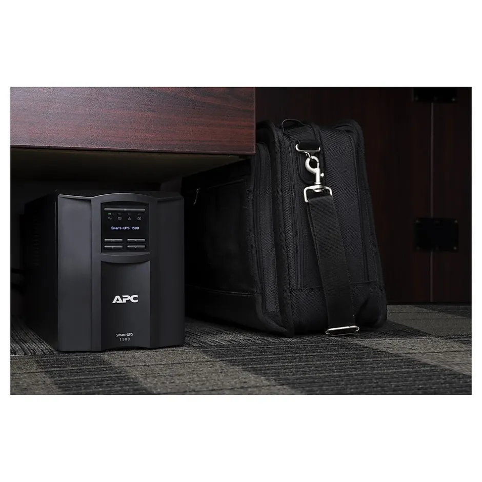 The APC® Smart-UPS Series SMT1500C 110/120/127 VAC UPS in black, provides up to 1440 VA/1000 W of power for servers, point-of-sale, routers, switches, hubs and other network devices. This tower mountable UPS has cold-start capability to provide temporary battery power when the utility power is out. It has 6 x NEMA 5-15R, SmartSlot, USB and NEMA 5-15P interfaces for connection. The maintenance-free sealed lead-acid battery has a life of up to 3 to 5 years.