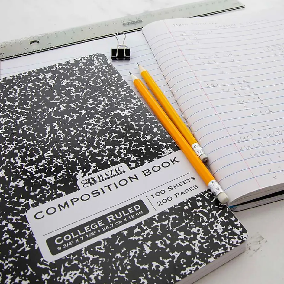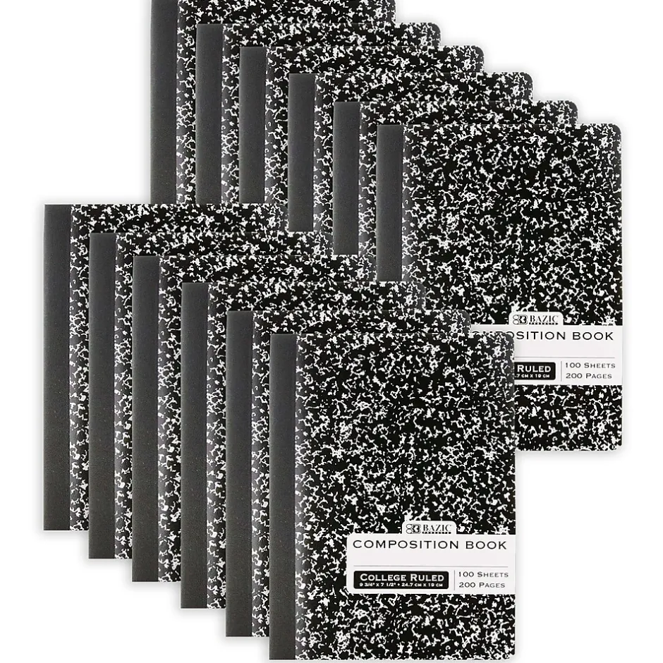 - SIMPLY NOTETAKING. Black marble composition notebooks come with 100 sheets of college-ruled paper. Ready for any assignment and take it with you on the go! Overall Size: 9.75″ x 7.5″.