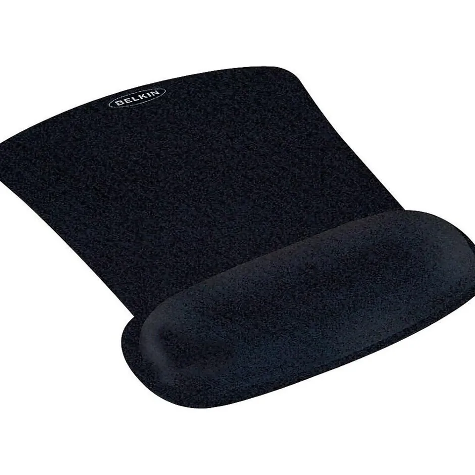 Scroll, point and click your way through each workday with this gel mouse pad. The smooth mousing surface offers precise tracking, while the gel pillow gently supports your wrist. Durable construction delivers long-lasting use, even in busy office environments. With a sleek black color, this Belkin WaveRest mouse pad coordinates effortlessly with your other computer peripherals for a cohesive look.