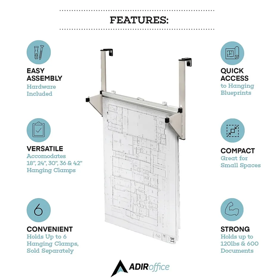 In offices partitioned into cubicles, this steel drop/lift wall rack is ideal. The rack fits over partition panels and walls that are up to 3.25 in. W and accommodates 6 hanging clamps (sold separately) for up to 600-sheets. Extending out less than 6 in., it offers a handy, convenient option for cubicle office filing. It allows you to keep active, current projects easily within reach in a small space.