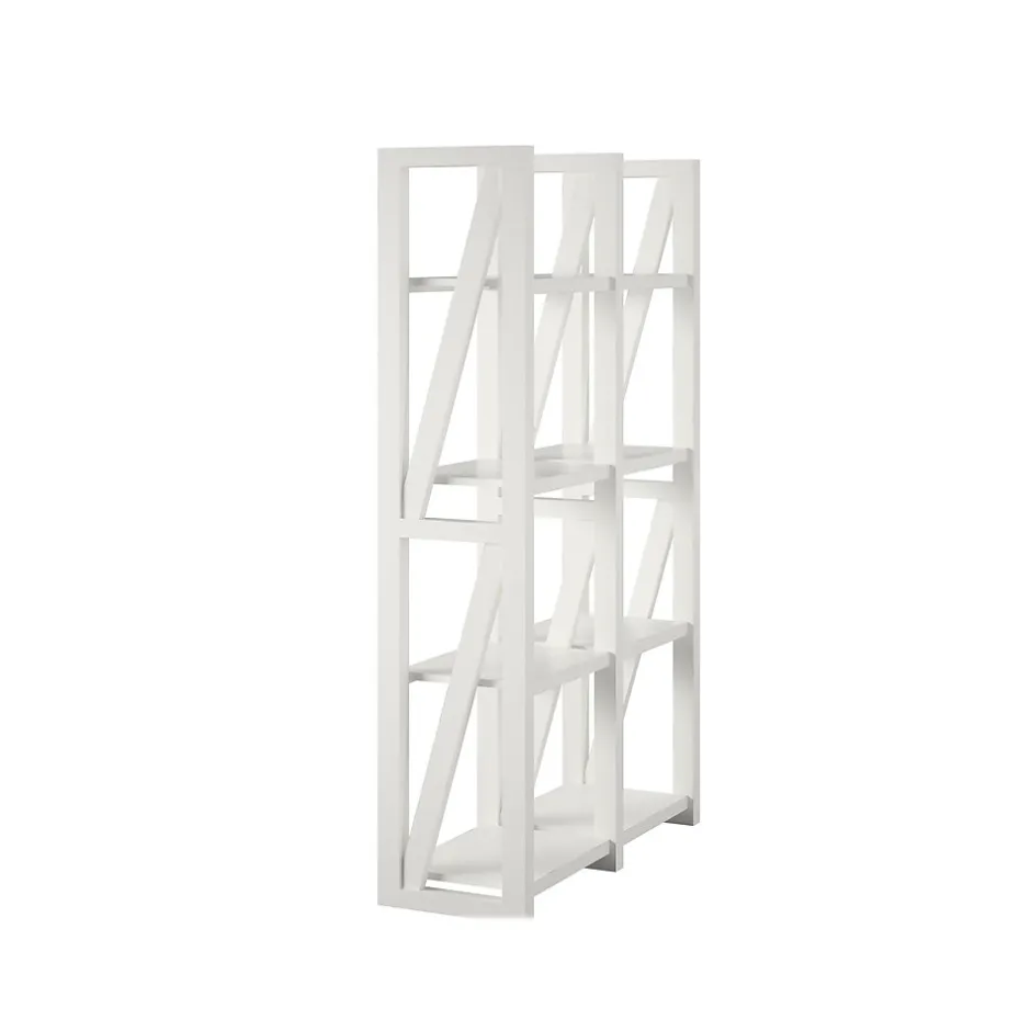 - Stylish bookcase/room divider is made with painted MDF in weathered white finish adding some rustic charm to the room