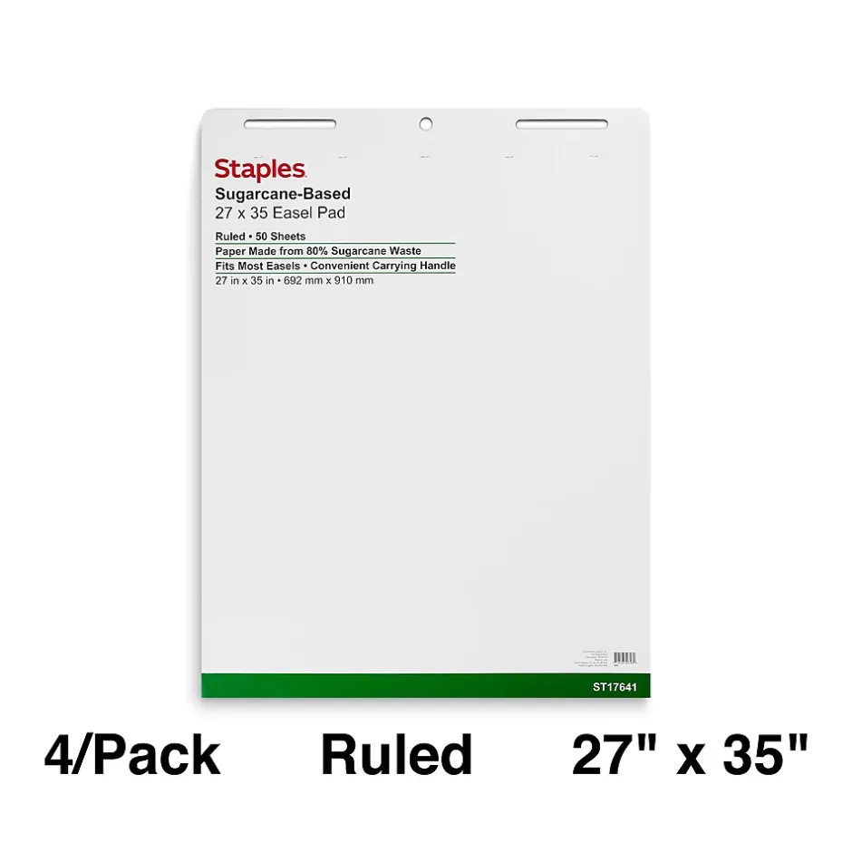 Outfit your classroom, boardroom, or other shared space with these white easel pads. The 1-inch-ruled layout keeps writing neat and legible, while the white color helps marker stand out on the page. Pinhole perforations at the top of each sheet prevent accidental separation, so you can flip back and forth through these Staples easel pads.