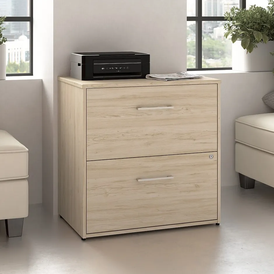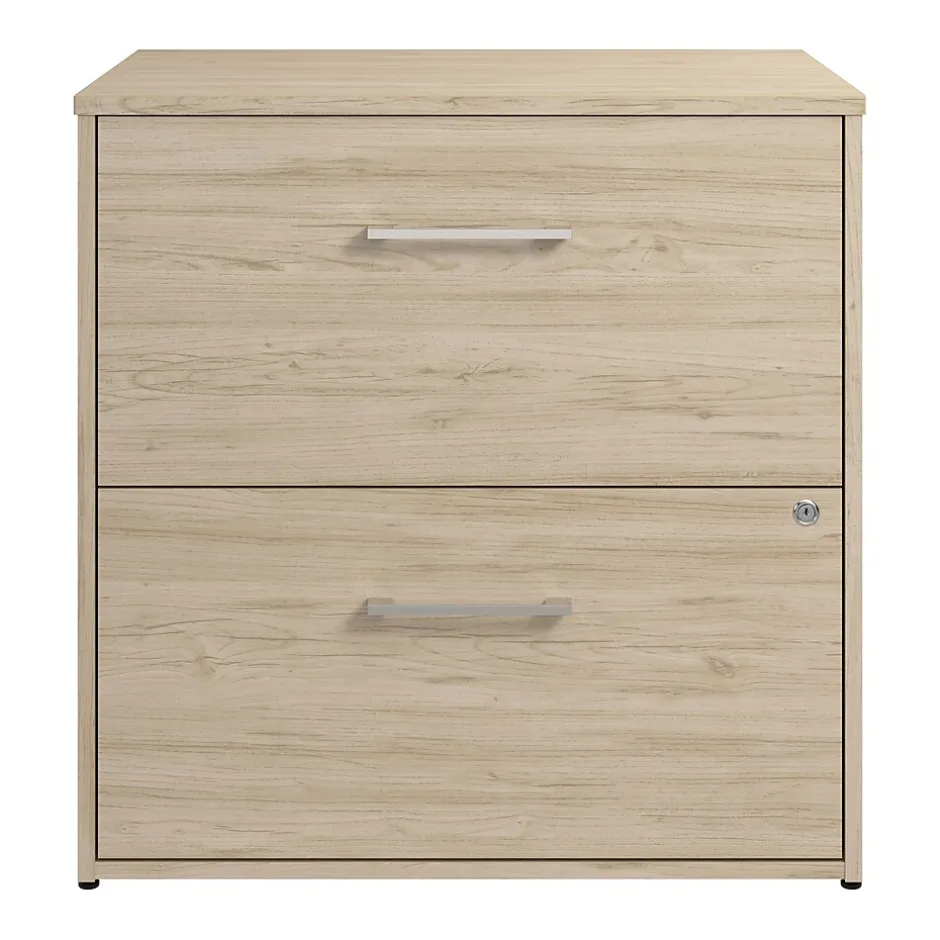 The Bush Business Furniture Hustle 2 Drawer Lateral File Cabinet provides the form and function needed to support your entrepreneurial spirit without breaking the bank. An ideal choice for small to medium-size businesses and home offices alike, the filing cabinet is a great way to keep letter, legal, and A4-size paperwork organized and accessible. Drawers open on smooth full-extension ball bearing slides for an easy reach to contents and are designed to extend one at a time for safety and stability. A single lock secures both drawers to safeguard sensitive documents as well as valuable items. Each drawer holds up to 60 pounds of materials. This 2 drawer file cabinet with lock has been meticulously designed and tested to meet or exceed ANSI/BIFMA standards for safety, durability, and performance and is backed by a 10 Year Manufacturer’s Warranty. American made with U.S. and imported parts.