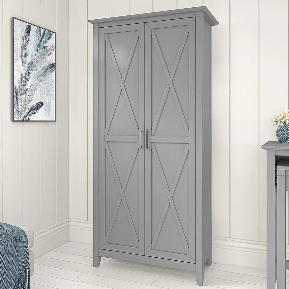 Best Key West 66" Tall Storage Cabinet with Doors and 5 Shelves, Cape Cod Gray (KWS266CG-03) Storage Cabinets