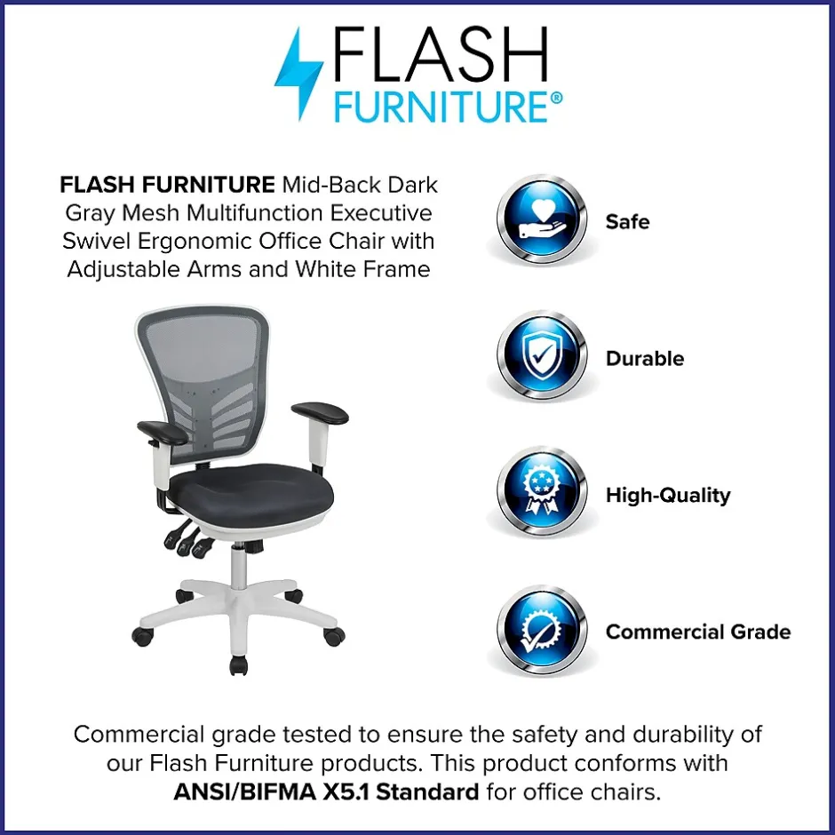 - Color: Dark Gray Mesh/White Frame; Material: Foam, Mesh, Metal, Plastic, Plywood, Polyester