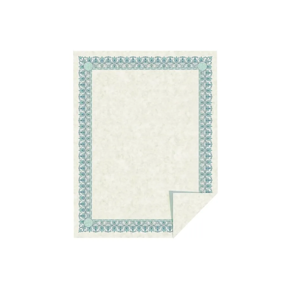 - Made of 24 lb. premium ivory parchment paper with green and blue border