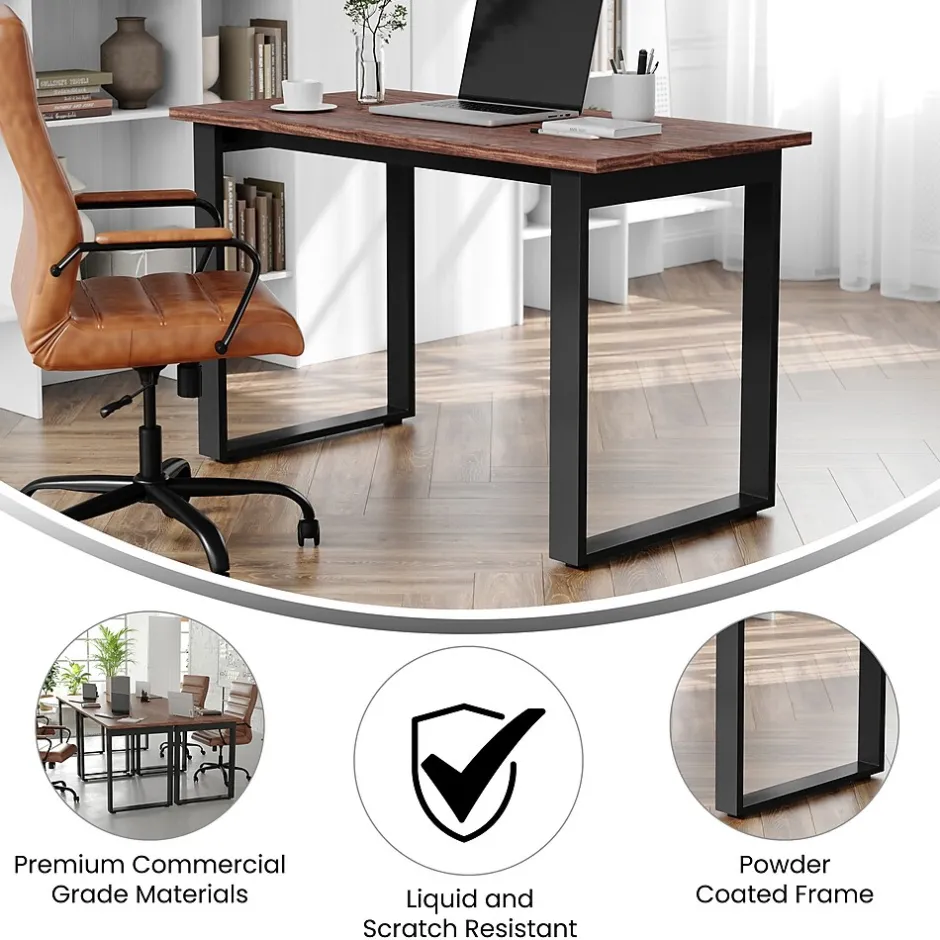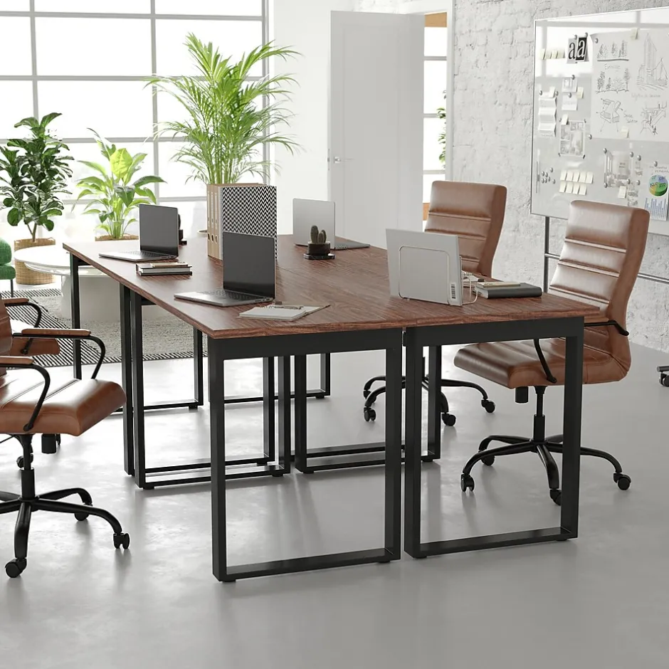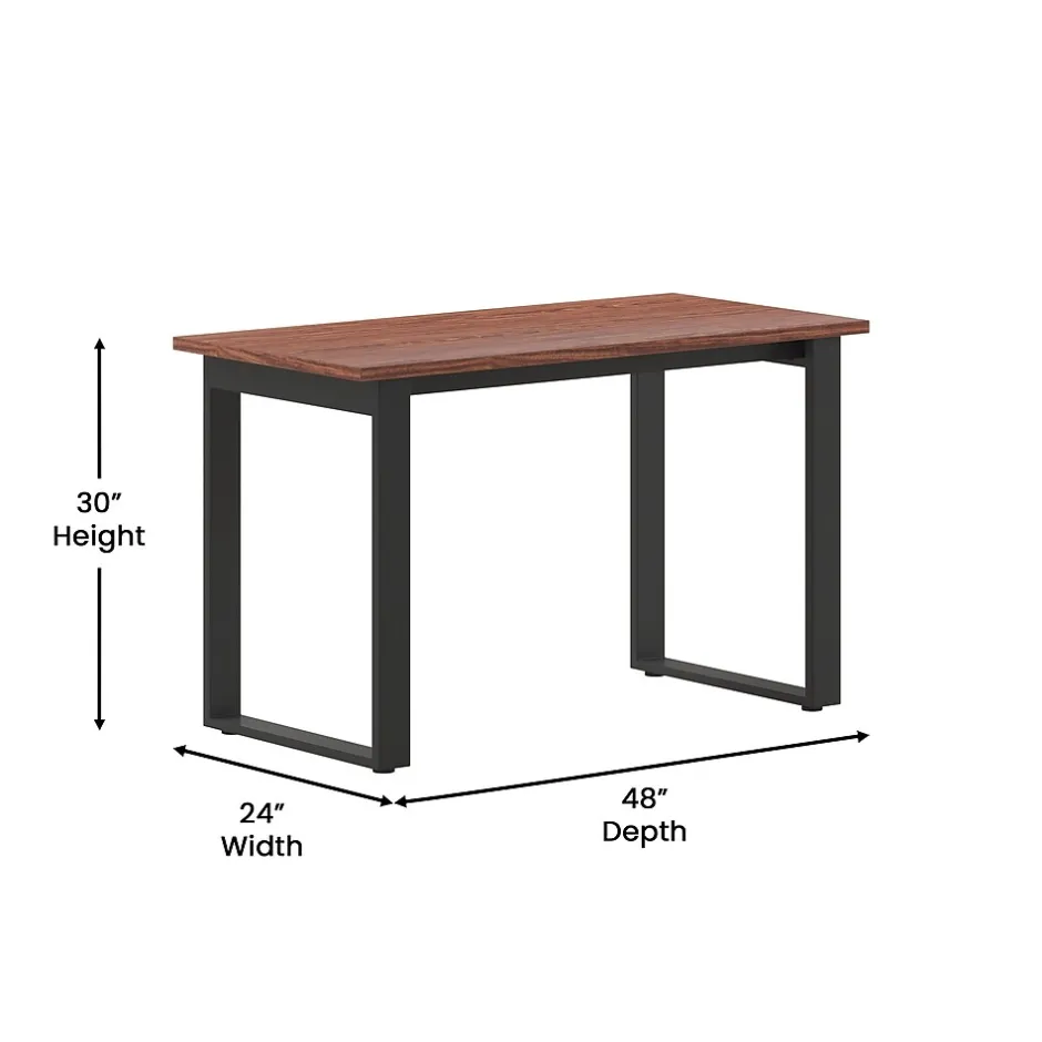 Foster big thinking during brainstorming sessions or encourage open communication and interaction between stakeholders during important meetings with this 48×24 commercial grade conference table. Available in timeless finishes that will blend well in any environment, this boardroom table will make a statement while providing ample space for multiple guests. The liquid and scratch-resistant 1 inch thick table top with a durable laminate finish on both sides and PVC edging increases durability for long-lasting use. The heavy-duty, powder coated, U-frame steel base comes with included hardware and easily attaches to the underside of the table into the predrilled holes. This conference room table holds up to 300 lbs. static weight, and features adjustable floor glides ensuring a level surface. Assembly takes less than 10 minutes and cleanup is easily achieved with a damp cloth.