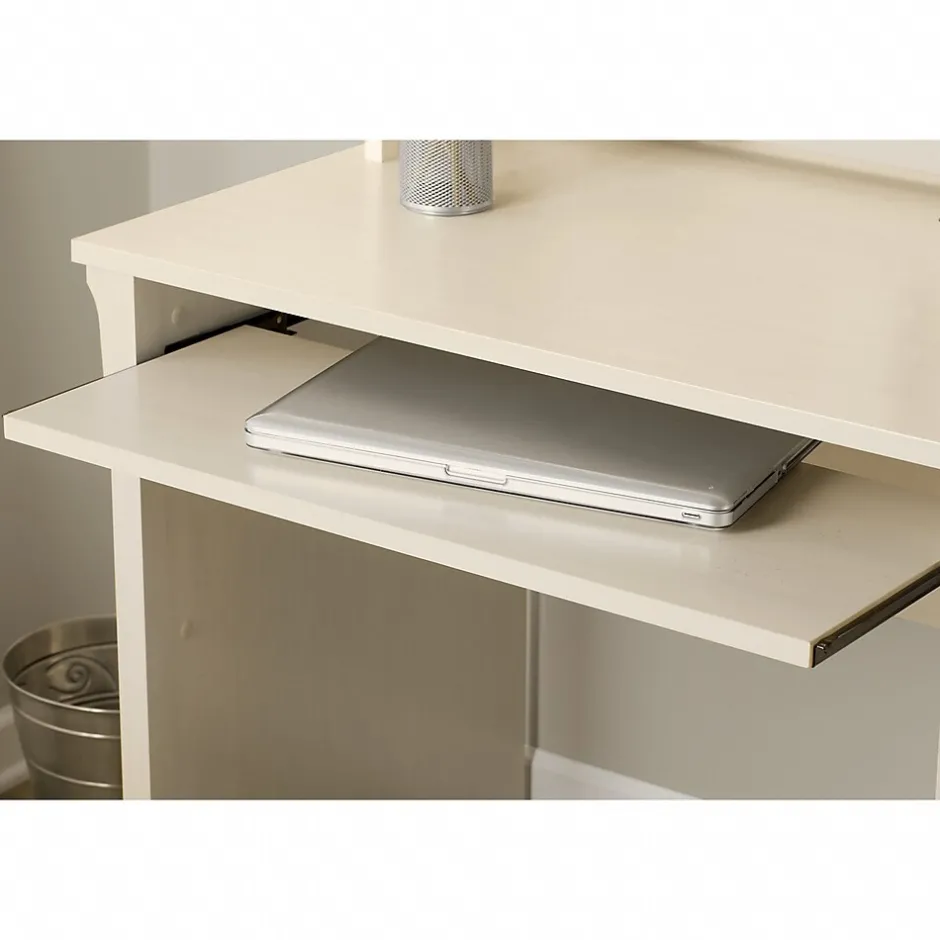 - Convenient pullout shelf accommodates a keyboard or laptop; vertical storage cabinet and box drawer keep supplies close by