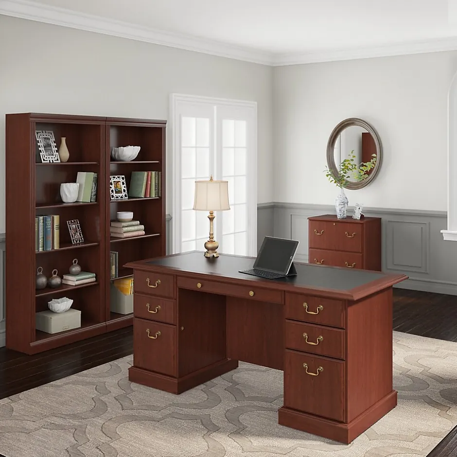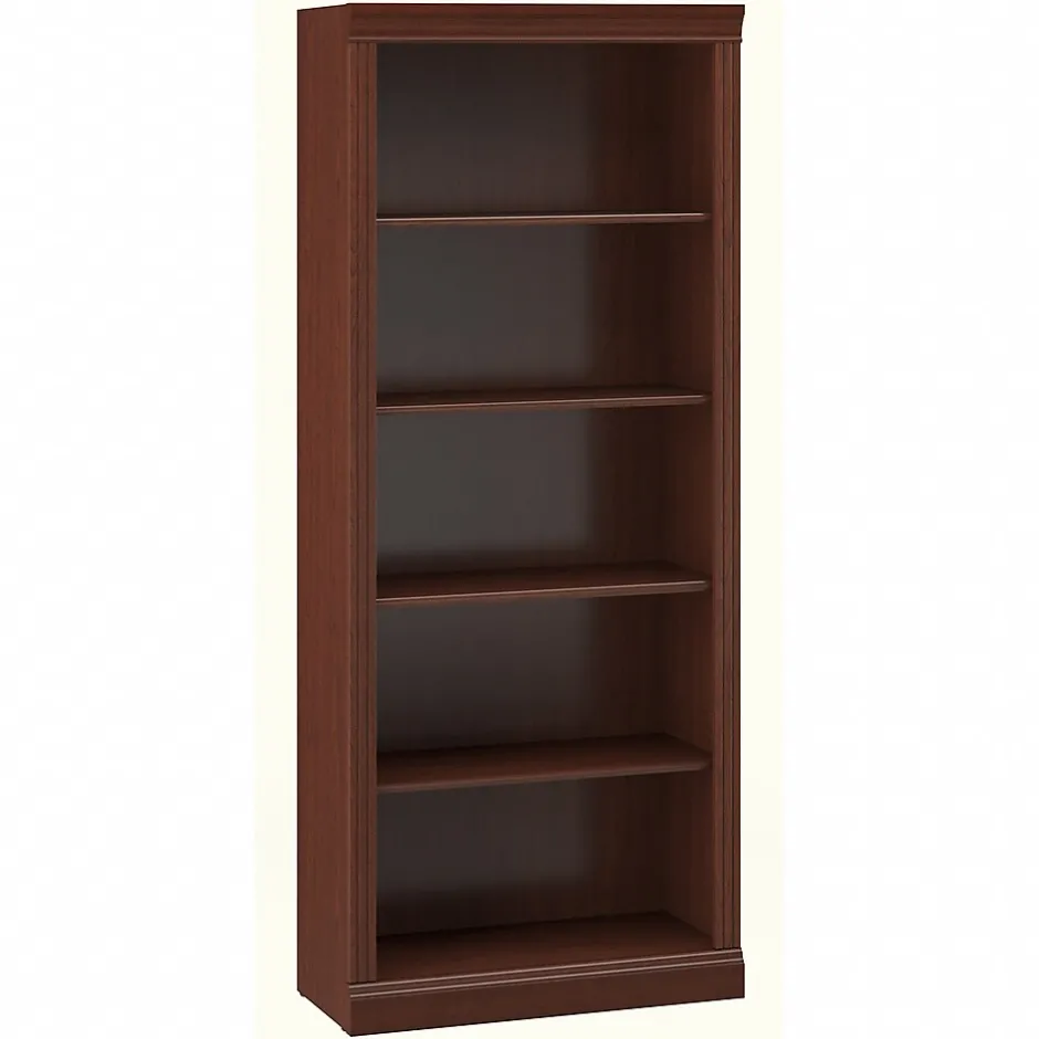 The Bush Business Furniture Saratoga Collection Harvest Cherry finished 30W Bookcase offers a refined elegance of timeless traditional styling. The durable, thermally fused laminate surface offers superior resistance to scratches and stains. The 30W Bookcase features two fixed shelves for stability with three adjustable shelves that can be adapted for storage flexibility. A perfect piece to personalize your office with books, photos, plants and decorative accents. The Saratoga collection comes to life with a rich, pleasing cherry finish. Solid construction meets ANSI/BIFMA standards for safety and performance in place at time of manufacture with commercial quality backed by Bush Business Furniture’s 10 Year Warranty.