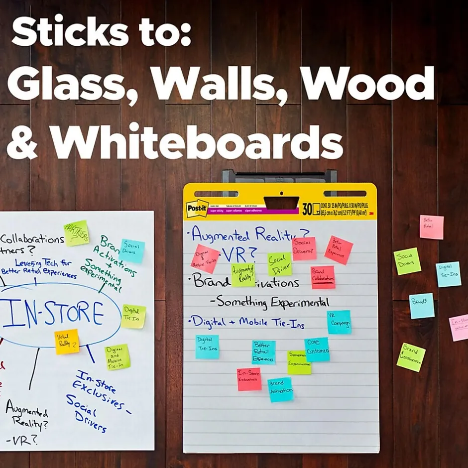 - The large, stickable paper to capture thoughts with Post-it Super Sticky Notes