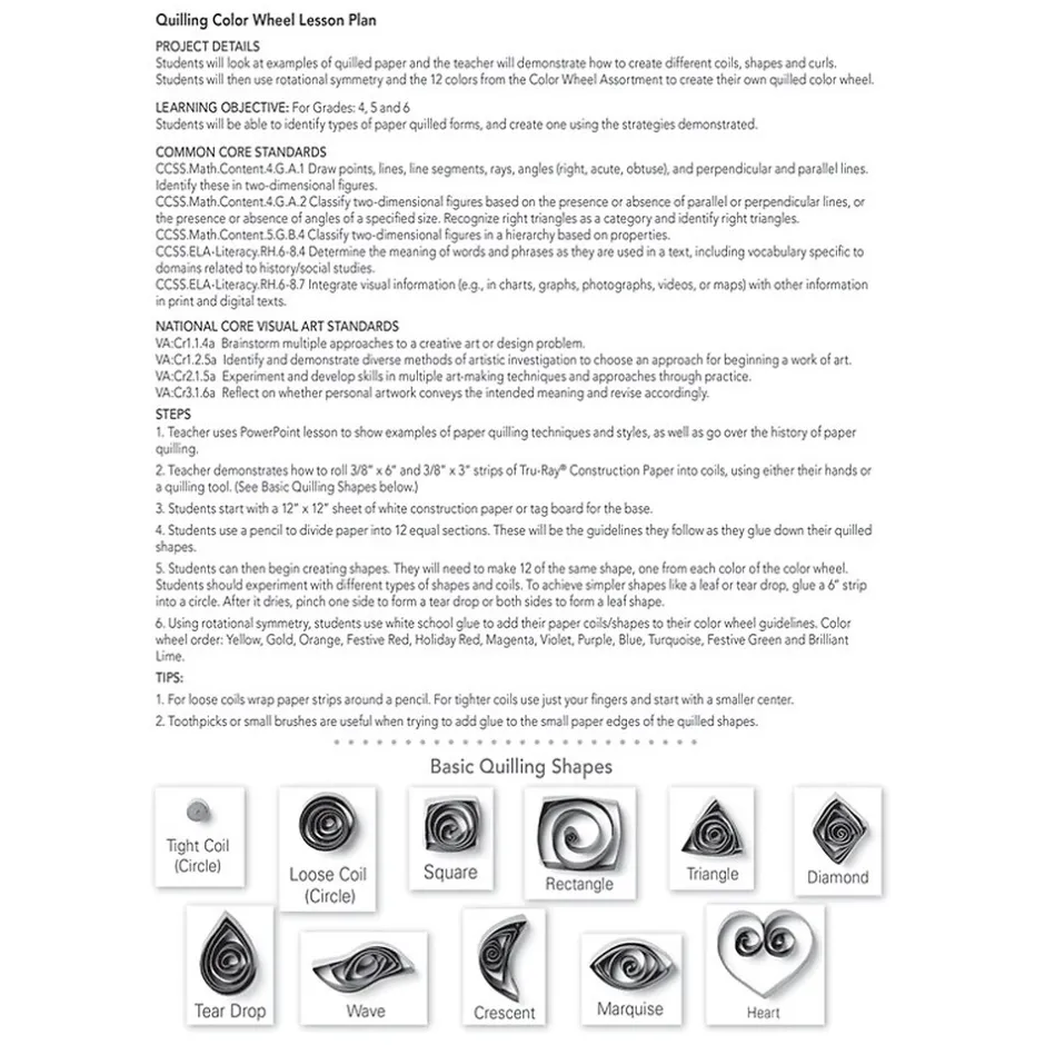 Heavyweight 100% vat-dyed sulphite with longer, stronger fibers. Tru-Ray® Construction Paper is tough enough to take scoring, folding and curling without cracking and tearing. Its superior fade-resistance keeps projects brighter and fresher longer. Color Wheel assortment is ideal for teaching color theory and color mixing and includes: Yellow, Gold, Orange, Festive Red, Holiday Red, Magenta, Violet, Purple, Blue, Turquoise, Holiday Green and Brilliant Lime. Acid free for less fade. Project instructions are printed on the back of the top sheet. Recyclable.