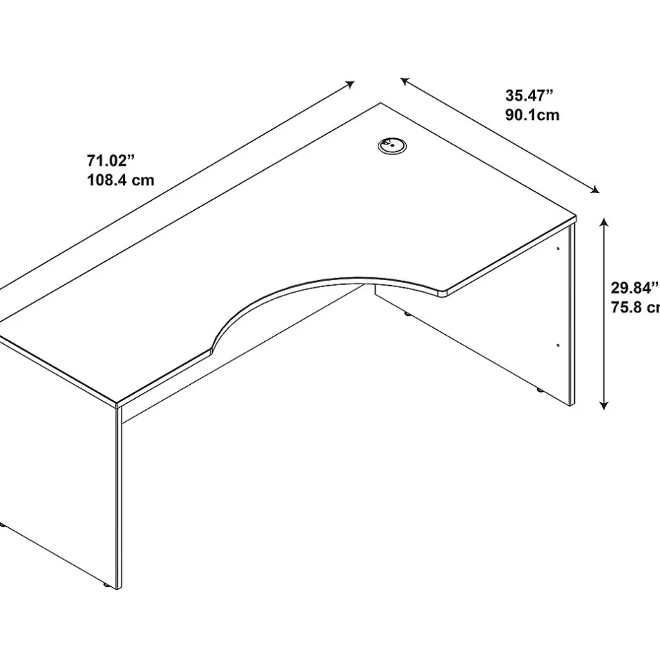 Roomy, comfortable and commercial-grade. The Bush Business Furniture Westfield 72W Right Handed Corner Desk provides a lasting professional appearance with clean lines, an extended modesty panel and heavy-duty construction. A comfortable, curved design invites you to lean in and get to work, while a thermally fused laminate finish fends off scratches and stains. Thick end panels and rugged edge banding ensure continued commercial quality. Spread out with paperwork and devices on the spacious surface while concealing cables in an integrated wire management grommet. Use the Right Handed Desk on its own or attach to matching Westfield products to create L or U Shaped configurations. Add a Hutch, Keyboard Tray or Monitor Arm (all sold separately) to complete your office. Backed by a 10 Year Warranty. American made with U.S. and imported parts.