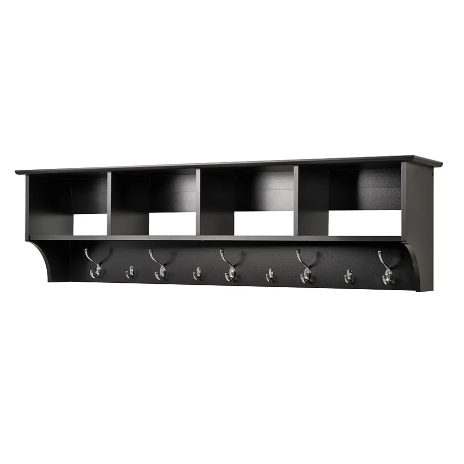 - Includes Prepac 60″ entryway cubby shelf, hanging rail system, owner’s manual