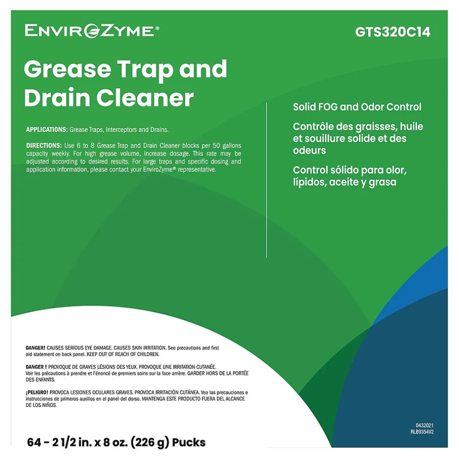 Simple and easy to use, as Grease Trap and Drain Cleaner dissolves it releases beneficial bacteria into the drain or grease trap to digest FOG and maintain clean, free-flowing systems.