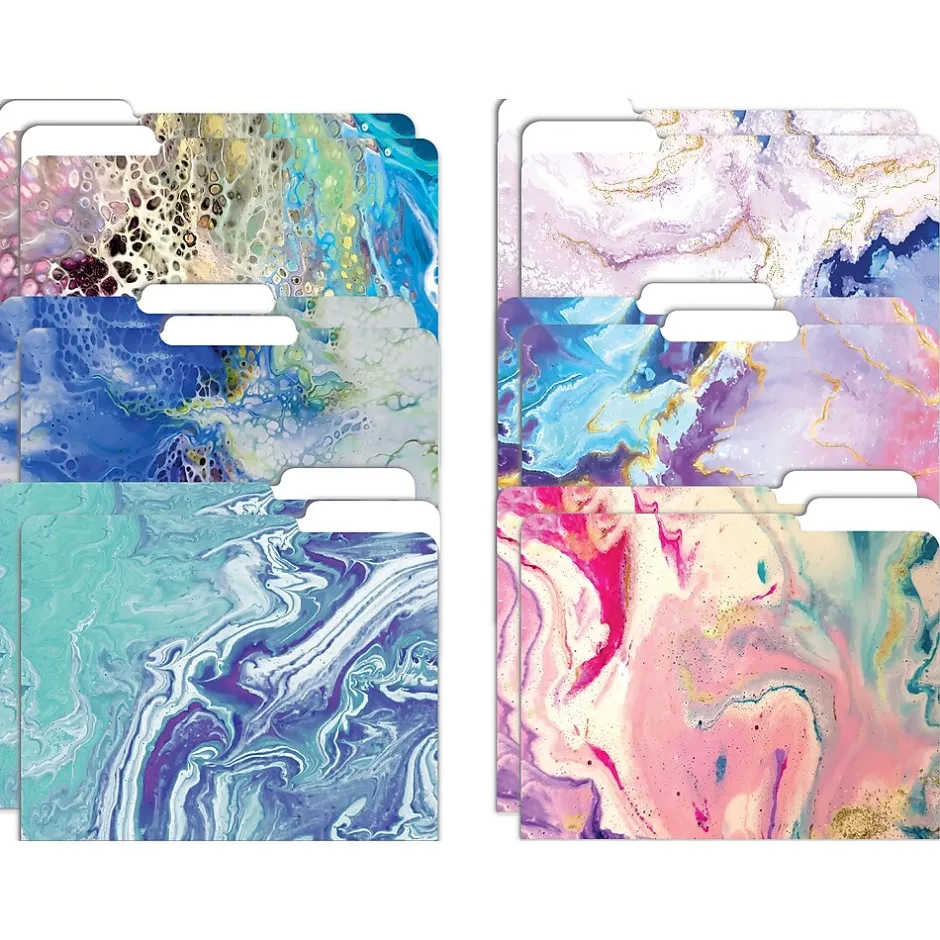 The Better Office Abstract Art fashion file folders come in six colorful designs printed on heavyweight (300 gsm) paper with a clear-coated finish for added durability and sheen. The 1/3-cut tabs allow a sizable amount of space for customization. Use in the office or at home to brighten your workspace and personalize your project folders.