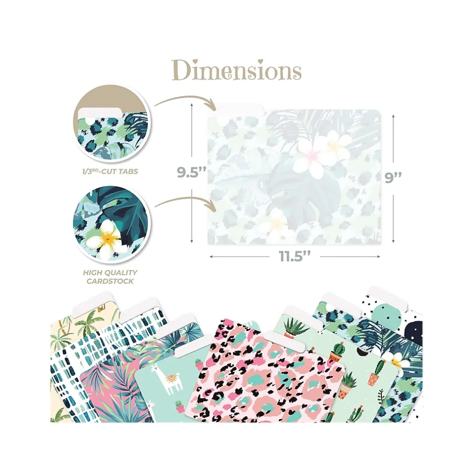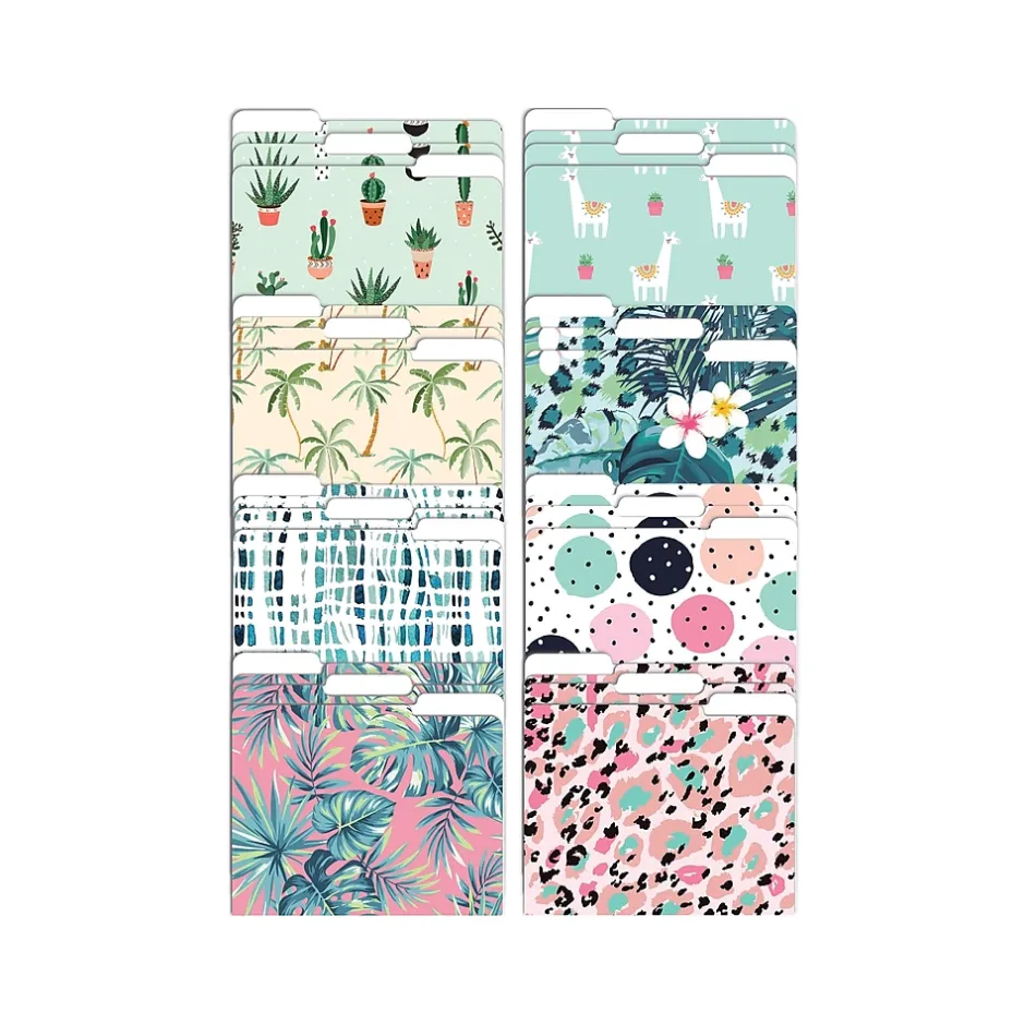 The Better Office Cute & Fun Modern Mix fashion file folders come in eight attractive designs on heavyweight (300 gsm) paper with a clear-coated finish for added durability and sheen. The 1/3-cut tabs allow a sizable amount of space for customization. Use in the office or at home to brighten your workspace and personalize your project folders.