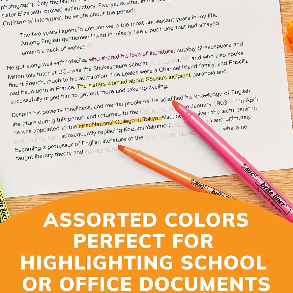 - BIC Briteliner Highlighters are perfect classroom highlighters with a chisel tip for versatile use