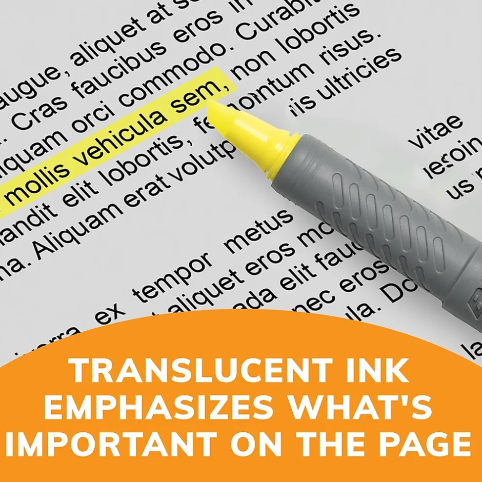- Versatile chisel tip which allows for precise highlighting on both wide and narrow lines of text
