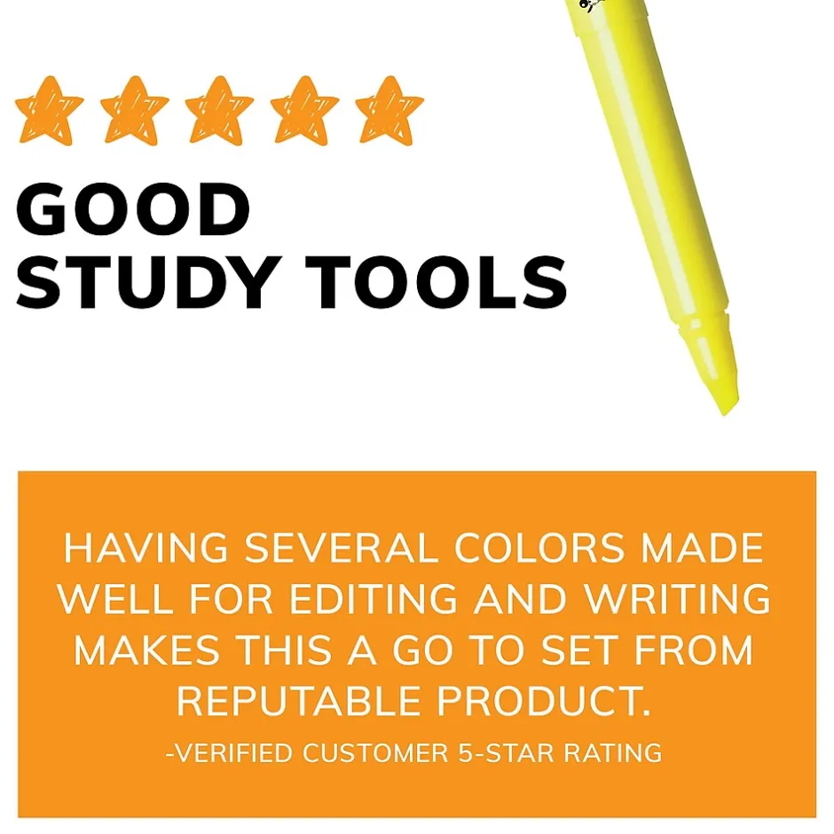 - Highlighter set with translucent ink that emphasizes what’s important on the page without obscuring the highlighted text