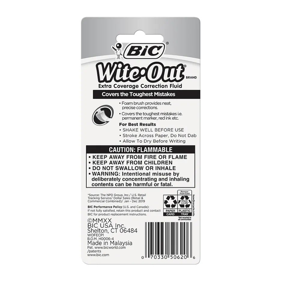 Cover up typos, unintentional marks, and other mistakes in a hurry with this easy-to-use correction fluid. The white color helps create less noticeable revisions, while the foam applicator makes it simple to get precise coverage. This Wite-Out Extra Coverage white correction fluid is compact, so you can conveniently stow it away in a briefcase or binder for quick access.