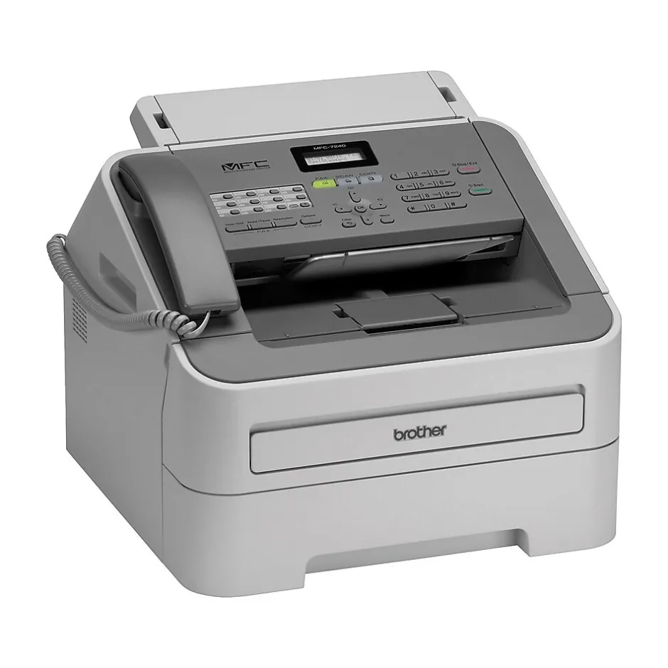 Produce crisp, professional-quality documents with this monochrome all-in-one laser printer. The compact size takes up minimal space in your office, while the four available functions let you print reports, copy forms, digitize documents and transmit faxes effortlessly. This laser printer features a 250-sheet paper tray, ensuring uninterrupted printing capabilities. The 20-page automatic document feeder makes it easy to scan, fax and copy multipage documents in a single pass, and the 21-page-per-minute copy speed means less waiting for jobs to complete. Use the Hi-Speed USB 2.0 interface to connect this printer to your desktop computer, and connect the included telephone line cord to prep the integrated fax machine for transmitting and receiving documents. Boasting a bright one-line LCD panel and simple push-button controls, this Brother all-in-one printer offers intuitive navigation through every task.