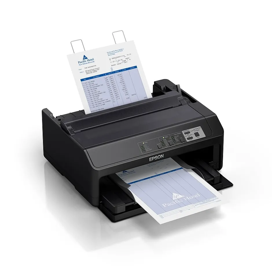 The Epson FX-890II Impact Printer offers the durability and ease of use for critical daily print requirements. These reliable 9-pin, narrow-carriage impact printers boast a long life cycle, a 3-year limited warranty and speeds up to 738 cps. Their up-to-7.5-million-character ribbon cartridge reduces user interventions as well as cost per page. Engineered for seamless integration into virtually any system, they include Epson ESC/P, IBM PPDS and MICROLINE printer languages. Ideal for harsh environments, these workhorses race through cut-sheet, continuous or multipart forms up to 7 pages thick, and feature an intuitive control panel for easy setup and operation.