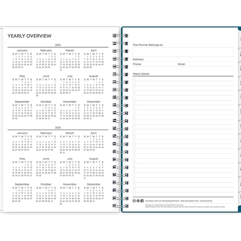 A valuable tool to organize your days, this Blue Sky Bakah Blue small 2024-2025 planner helps you set goals, track progress, and make the most of your time.