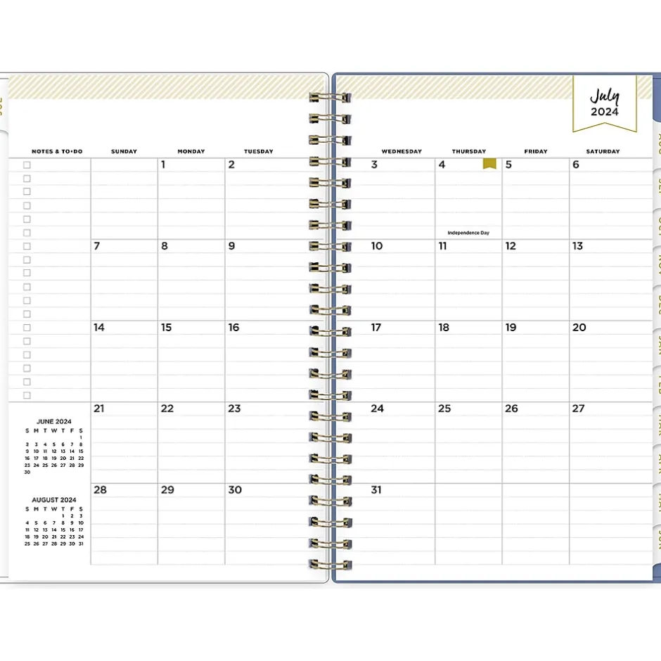 - Offers one month per two pages and one week per two pages, with space for notes and quick reference calendars