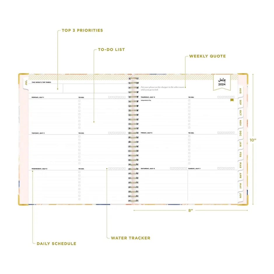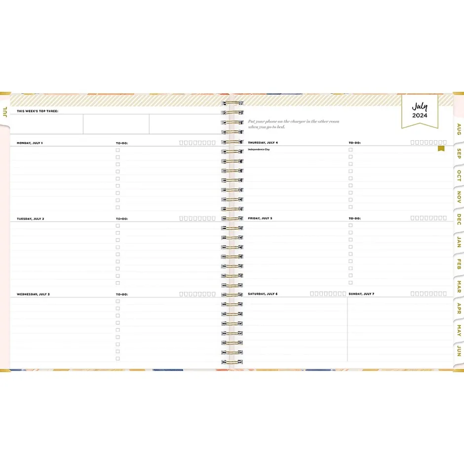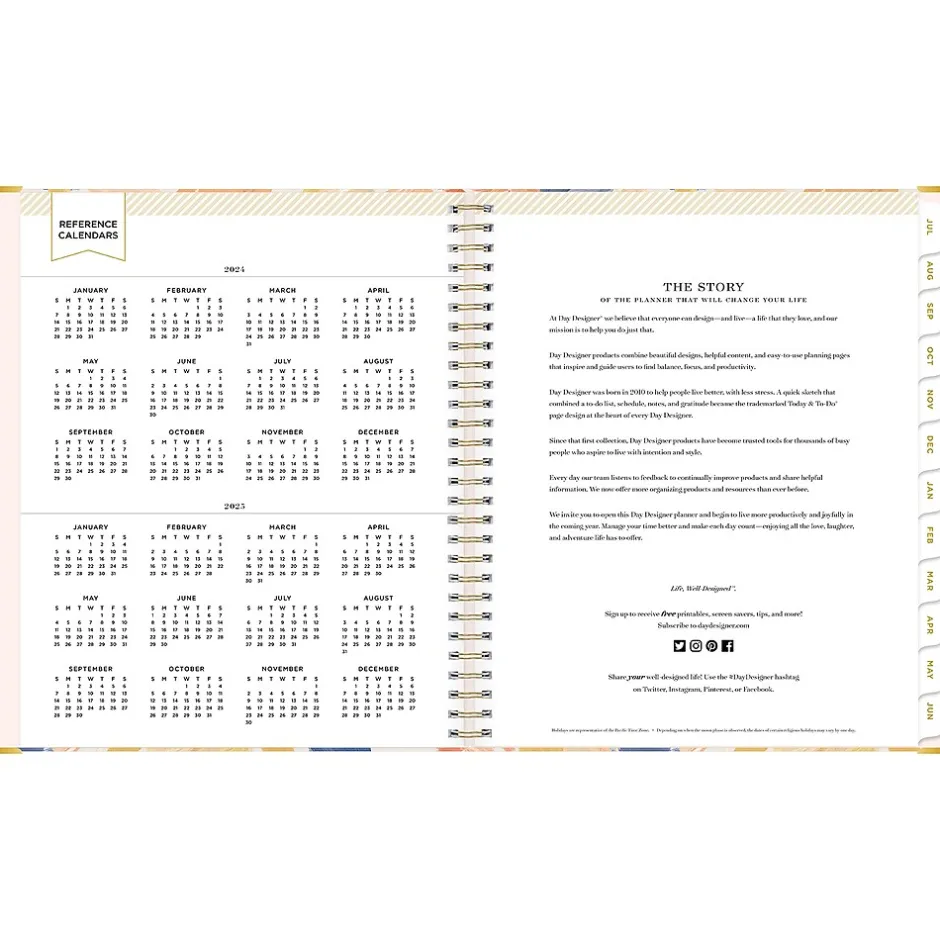 Design your year with Day Designer for Blue Sky academic planners. The In Bloom deluxe hardcover weekly and monthly planner has lined weekly views with room for your top three priorities, tabbed monthly calendars, and notes pages. Enjoy the storage pocket, stickers, and goal setting worksheets for a well-designed academic year.