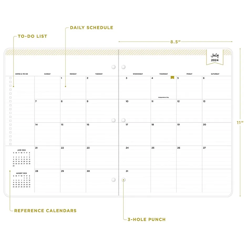 Blue Sky planners always make the grade. A valuable tool to organize your days, the Blue Sky Day Designer Spotty Small Gold monthly academic planner has a stapled spine for snag-free storing and a three-hole punch for snapping into your binder.