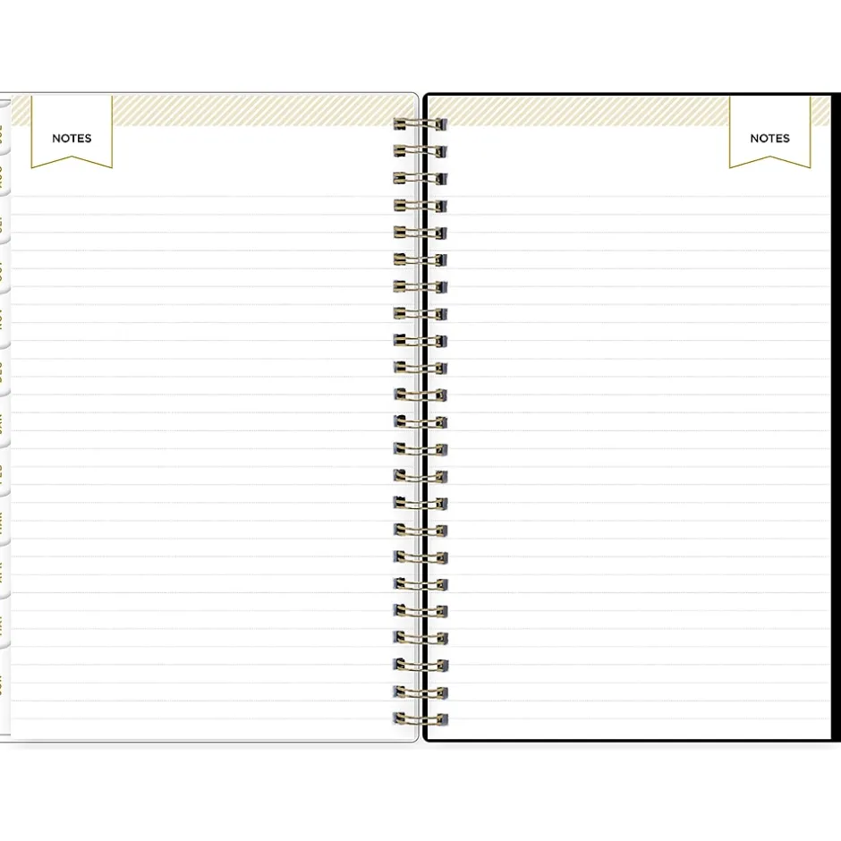 - Features one month per two pages and one week per two pages, with space for notes and quick reference calendars