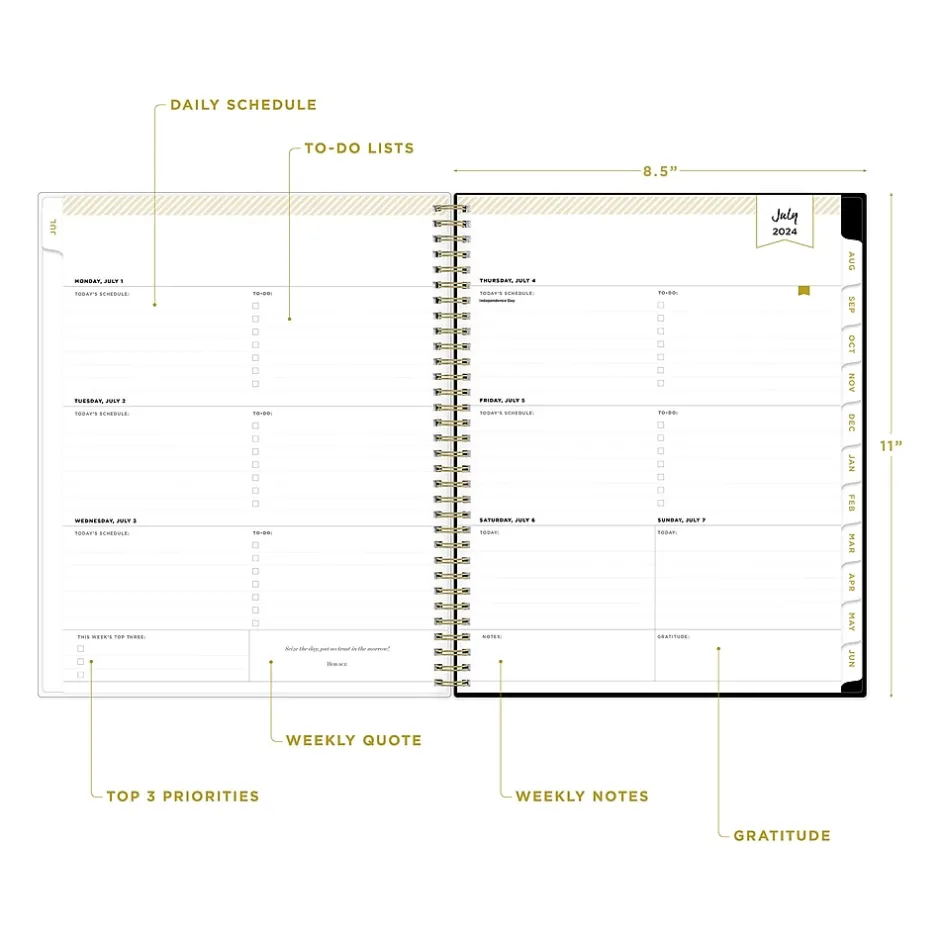 Blue Sky 2024-2025 Day Designer Swiss Dot 8.5″ x 11″ Academic Weekly & Monthly Planner, Black/Gold (150136) Outlet