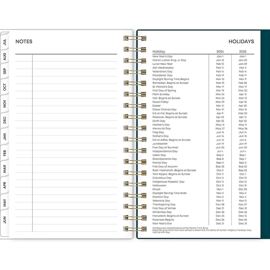 - Features weekly and monthly pages, with space for notes and a list of holidays