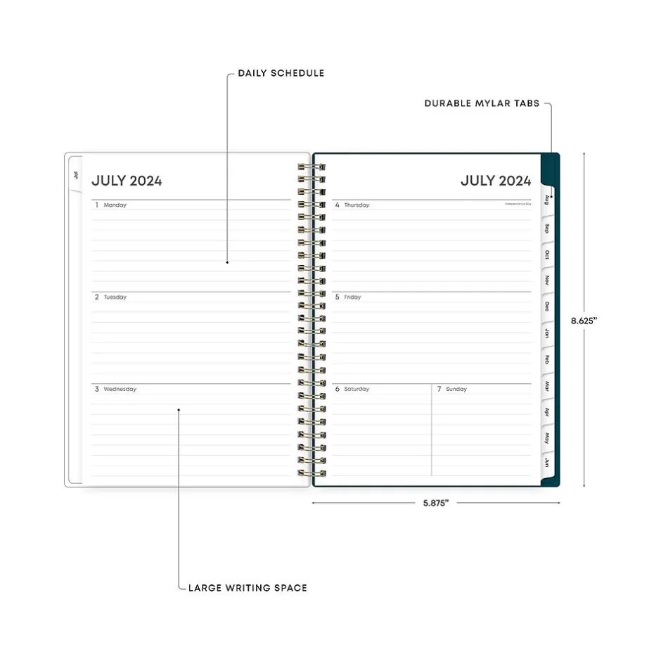 - Offers weekly and monthly spreads with space for notes and reference calendars